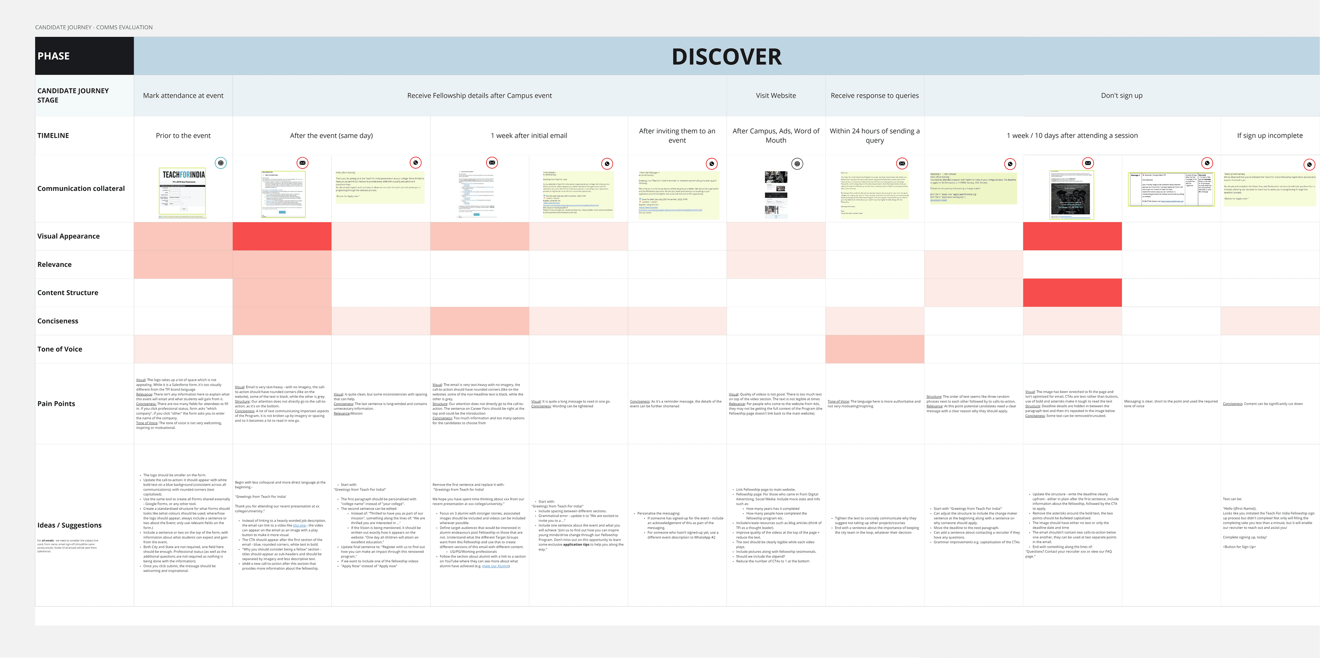 Across emails, WhatsApp, and social media, shifting tone and voice diluted TFI’s mission and confused candidates. The lack of emotional coherence made the brand feel disjointed and eroded confidence in the process.