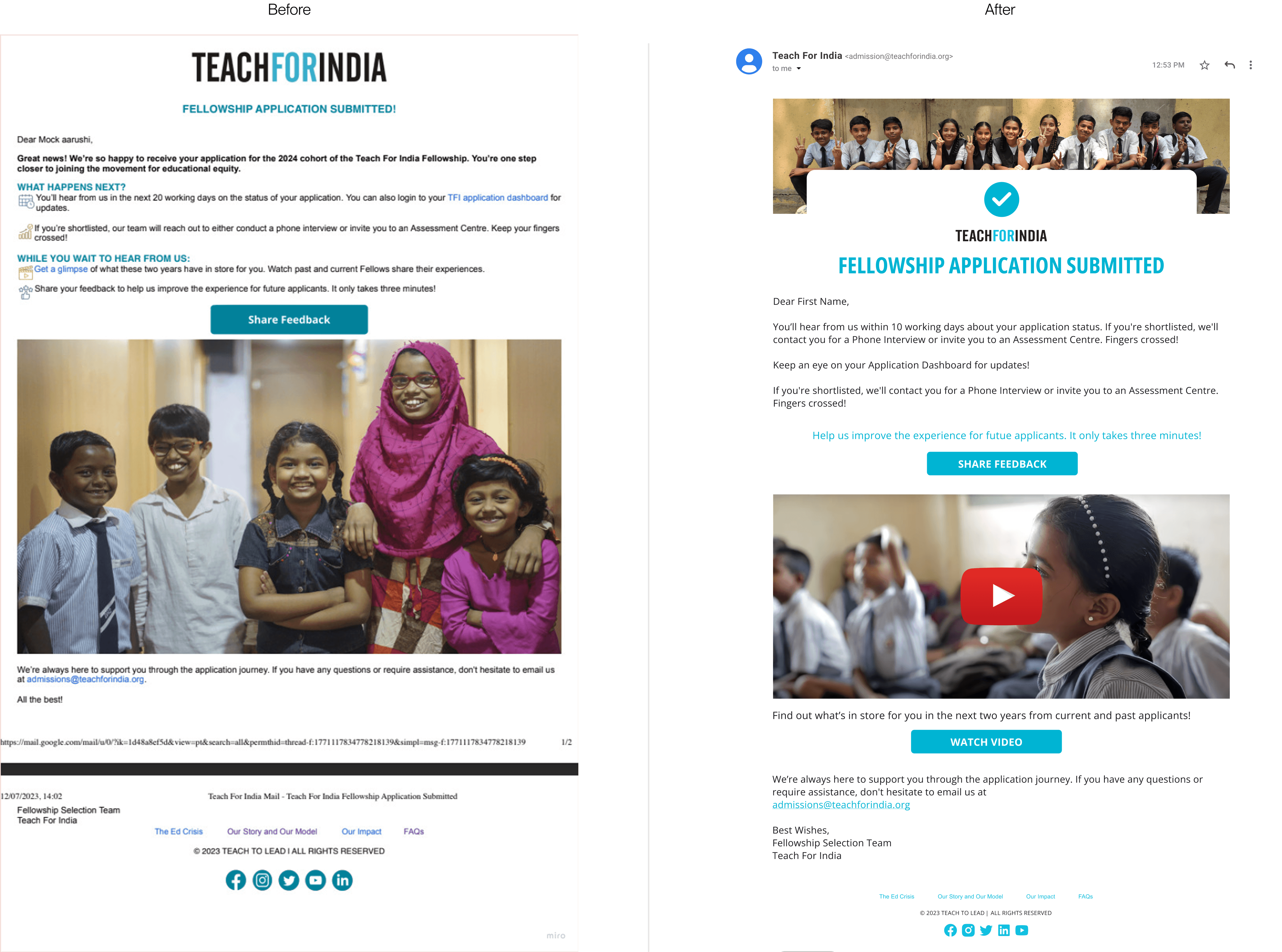 Teach For India, a non-profit working to end educational inequity through its nationwide Fellowship program, partnered with us to streamline and enhance its recruitment communications.