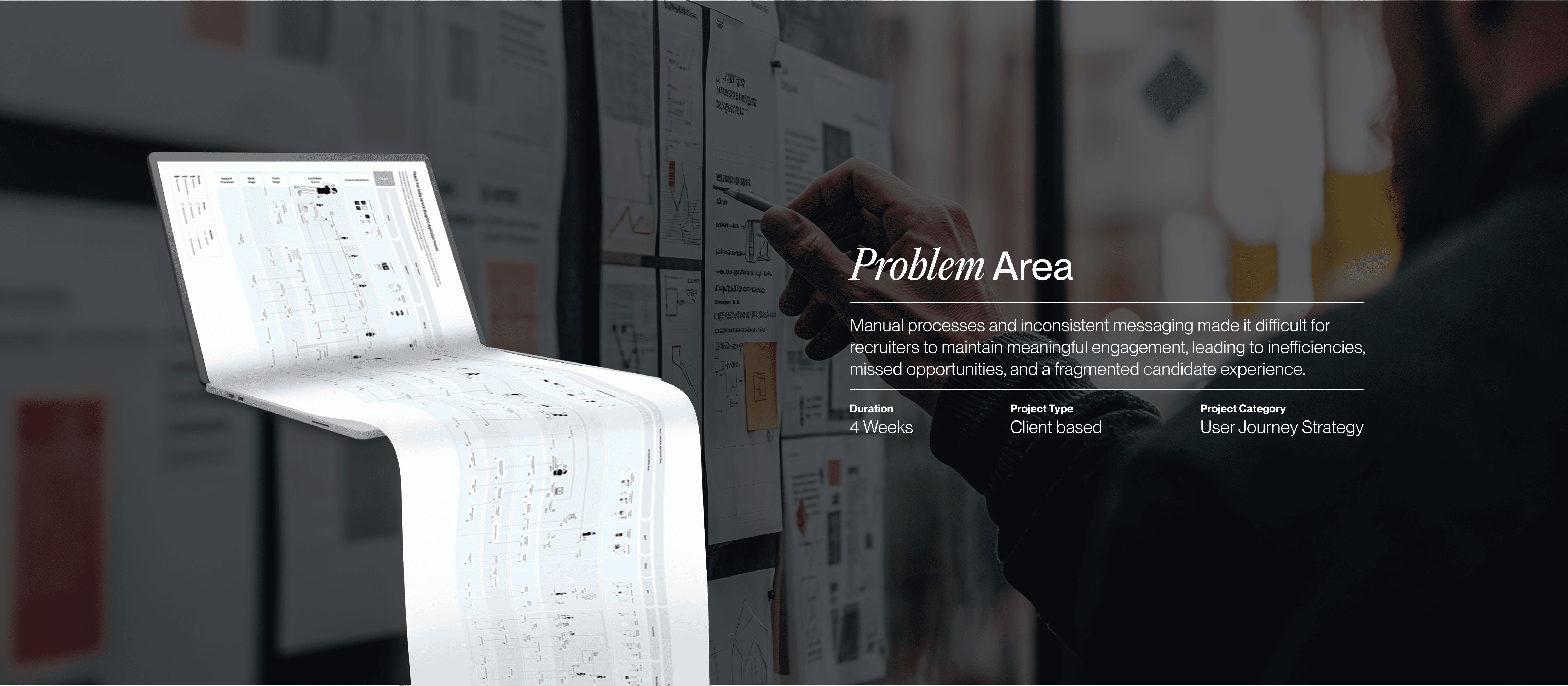The goal was to simplify a complex, largely manual process, creating a unified, efficient, and engaging communication system that delivers the right message at the right time. Designed to balance automation with personalization, the solution reduces recruiter workload, ensures consistency across channels, and strengthens the overall candidate experience.